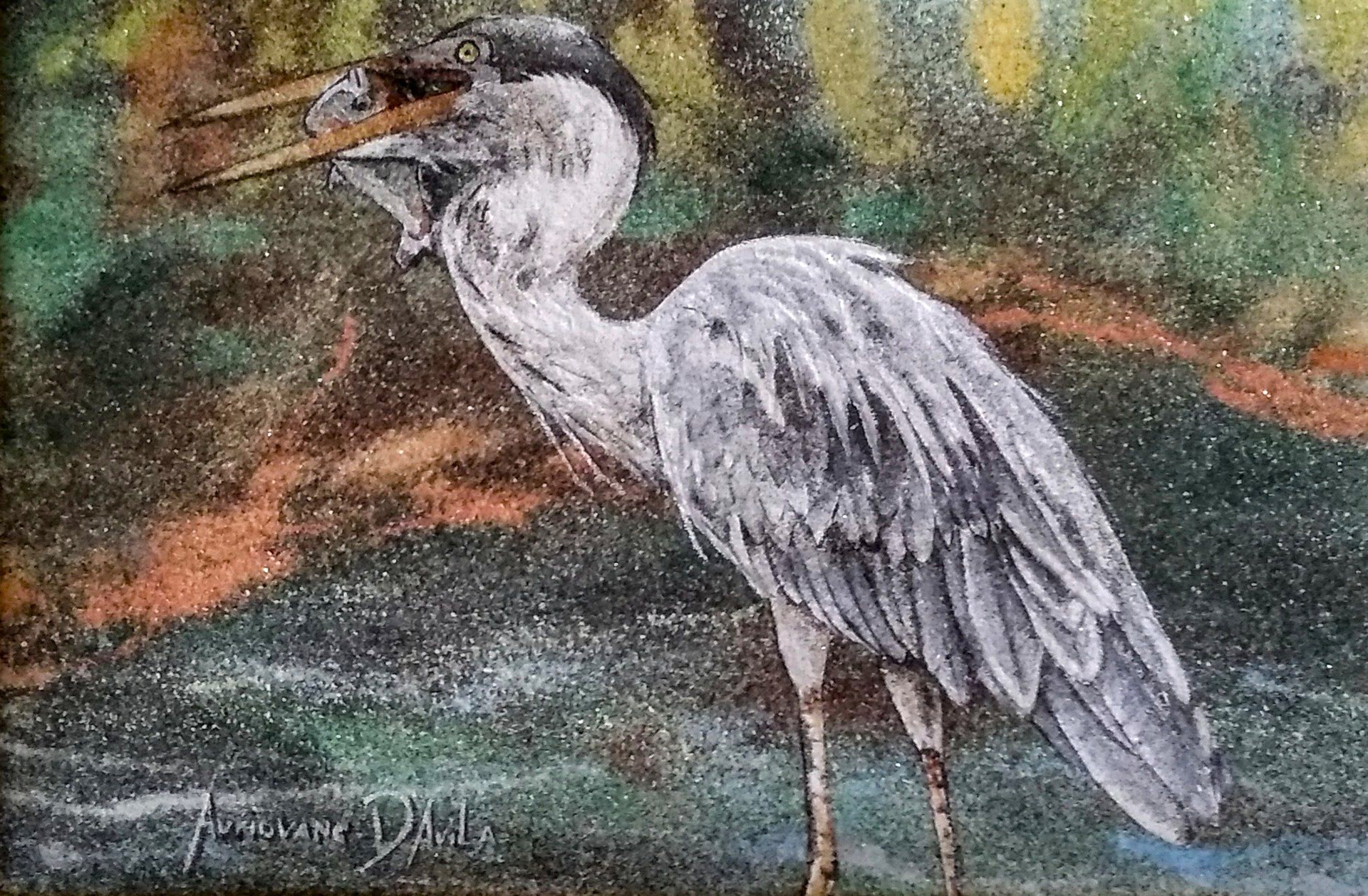 Instante preciso da natureza, onde a garça exibe sua destreza na caça